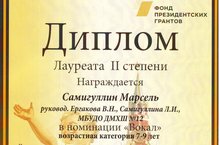 - Самигуллина Марселя, Лауреата 2 степени (преподаватель Ергакова В.Н., Самигуллина Л.И.)