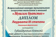 - Губайдуллина Алексея, Лауреата 3 степени (преподаватель Василевицкая Е.С.)