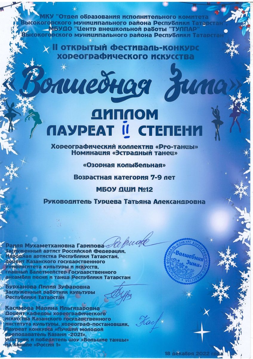 Поздравляем с успешным выступлением на II Открытом фестиваль-конкурсе хореографического искусства "Волшебная Зима":