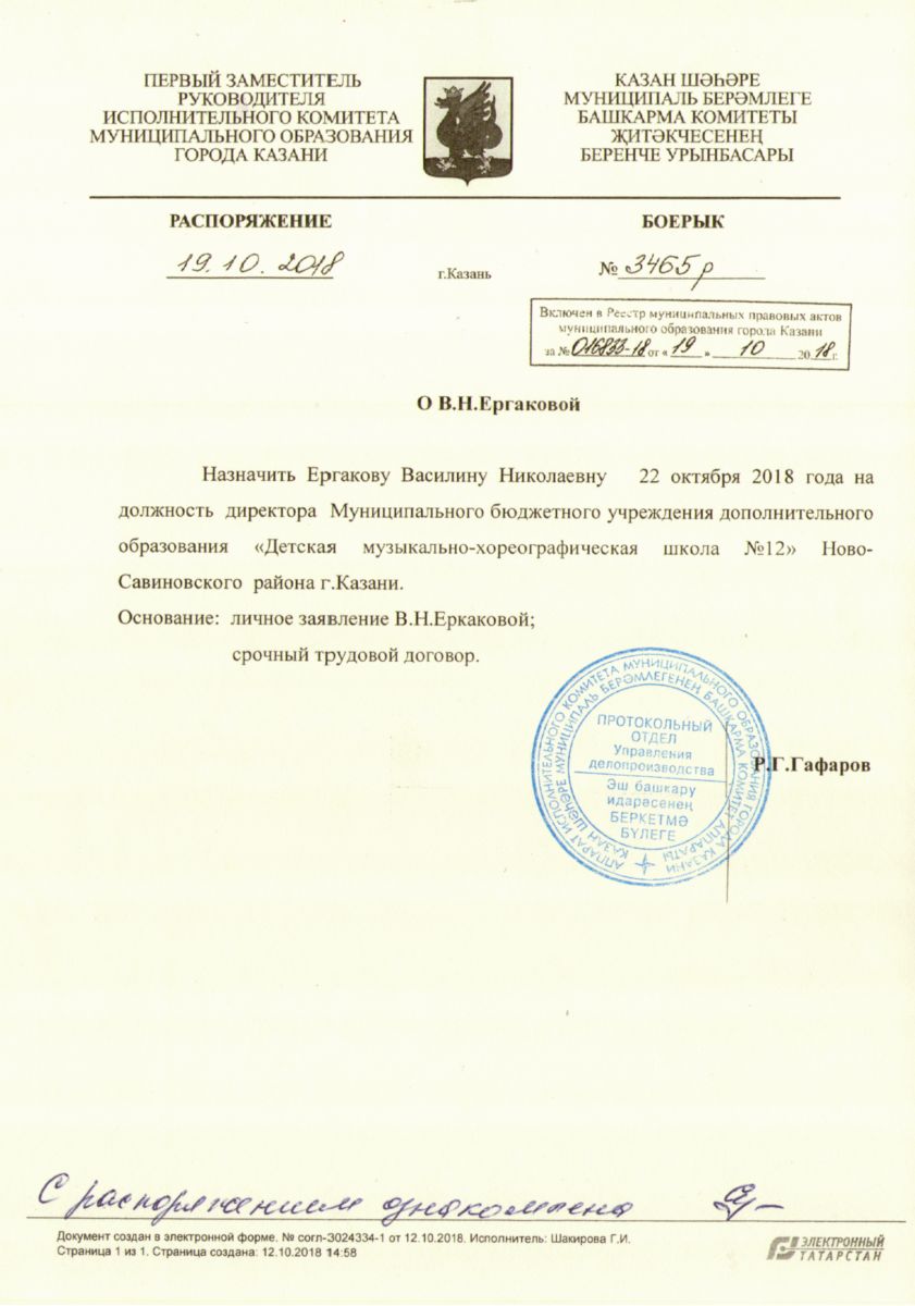 Приказ о назначении руководителя/Җитәкче билгеләү турында боерык