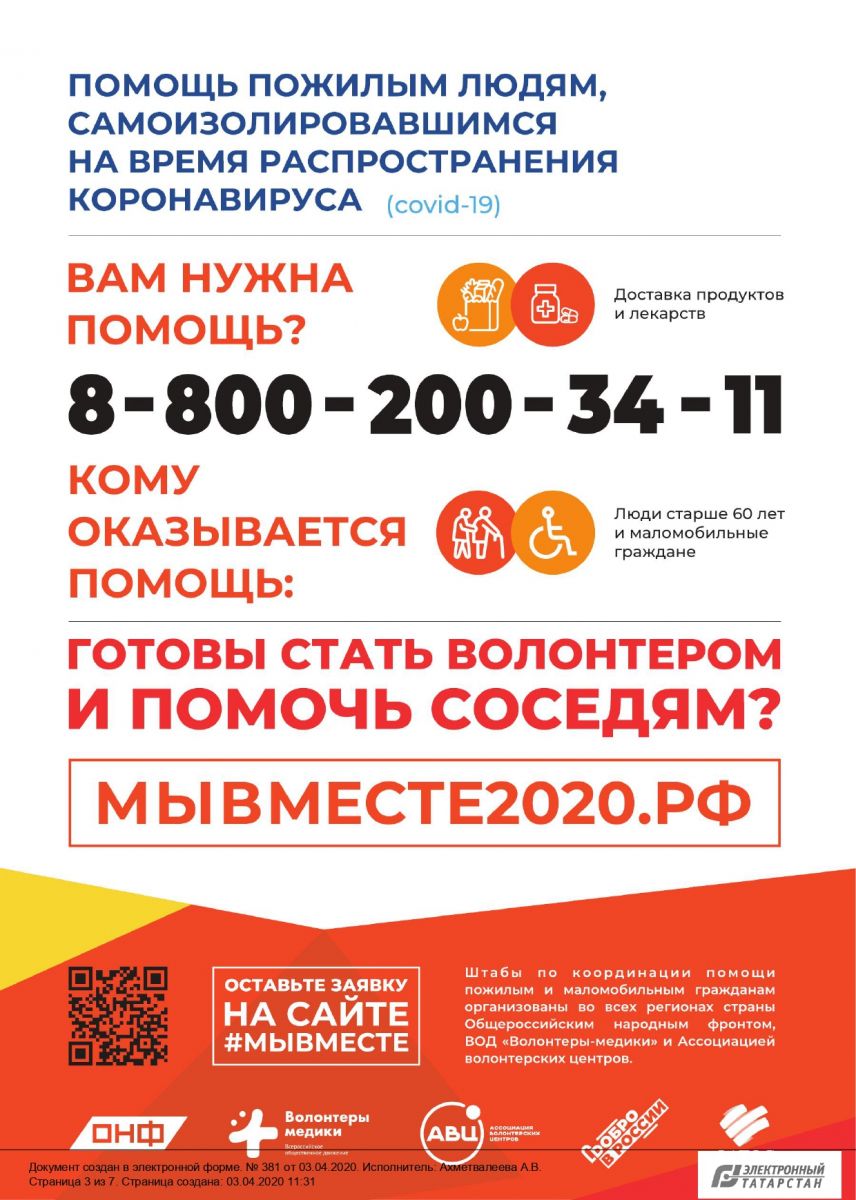 В настоящее время Общенациональная ассоциация ТОС совместно с Общероссийским Народным Фронтом реализует проект #Мы вместе. Этот проект позволит быстро находить тех, кто хочет помочь, и тех, кому эта помощь необходима.