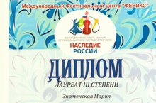 Знаменская Мария - Лауреат 3 степени (руководитель Скворцова А.С.)