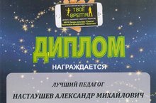 Поздравляем Настаушева Александра Михайловича, преподавателя ДШИ №15, с Дипломом Всероссийского фестиваль-конкурса "Твое время", в номинации "Лучший педагог"!