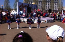 Чебакова Татьяна -песня "Катюша" М. Блантера, Саблина Мария - песня "Вызываю я вас из бессмертия" Н. Мухаметжановой, Андреева Лена - песня "Снова снится война" Н. Мухаметжановой. учащиеся приняли активное участие в народных гуляниях по программе праздника