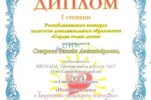 Пздравляем преподавателя ДШИ №15 Сагирову Элладу Александровну с получением Диплома I степени Республиканского конкурса педагогов дополнительного образования "Сердце отдаю детям"!