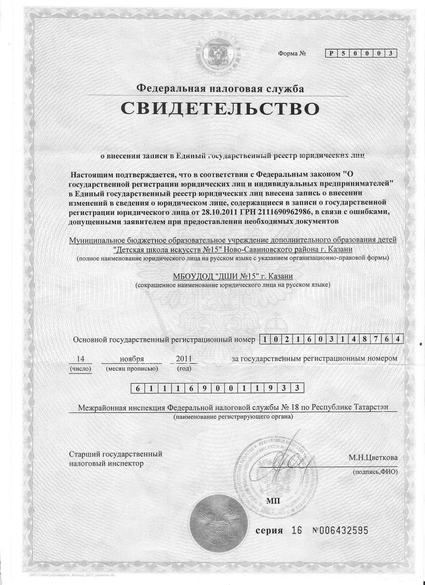Короткое название: | МБУДО "ДШИ №15" г. Казани |
