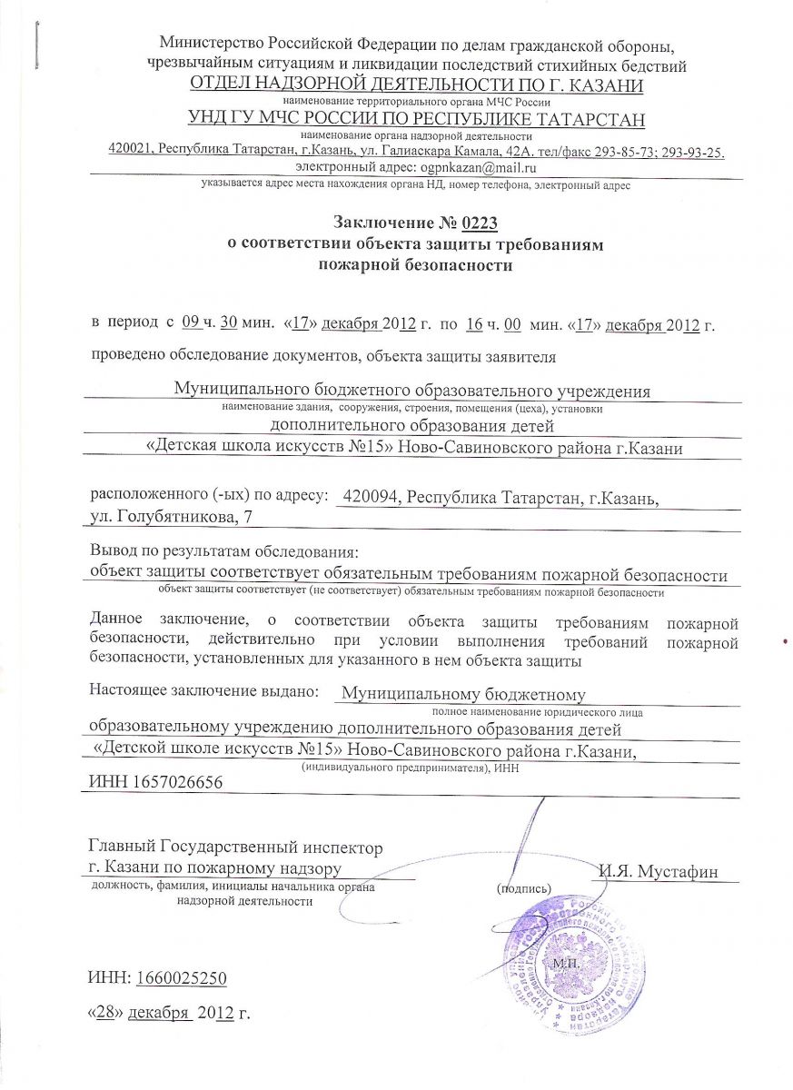 Заключение о соответствии объекта защиты требованиям пожарной безопасности