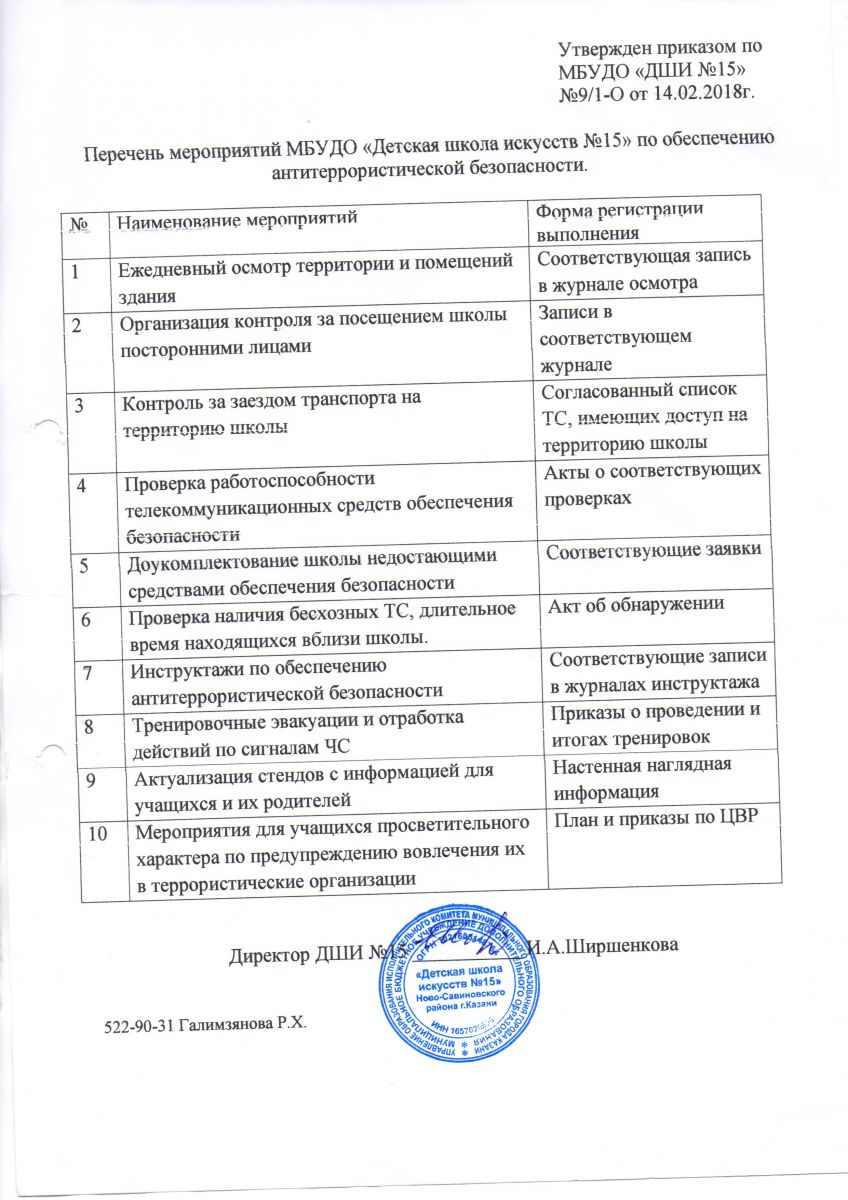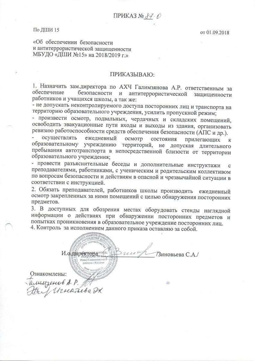 Приказ об обеспечении безопасности и антитеррористической защищенности" от 01.09.2018г.