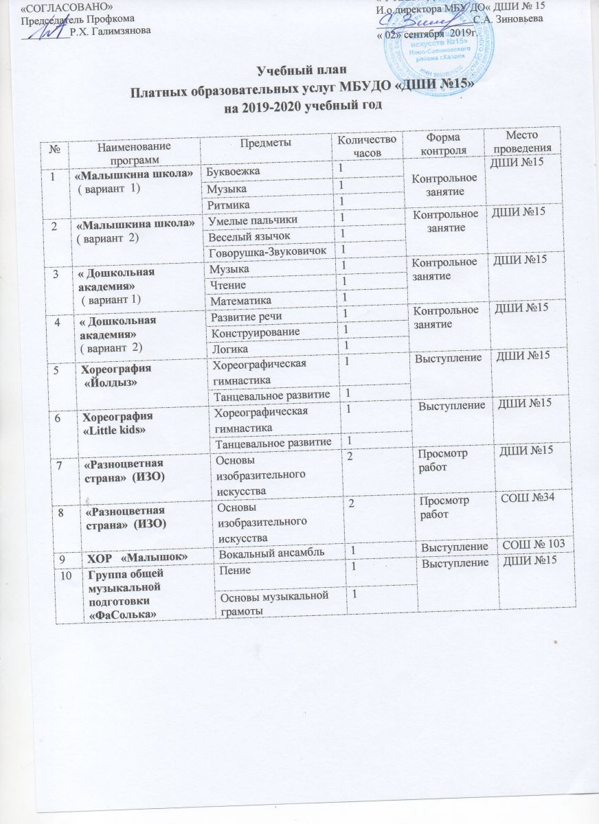 Учебный план платных образовательных услуг на 2019-2020 учебный год