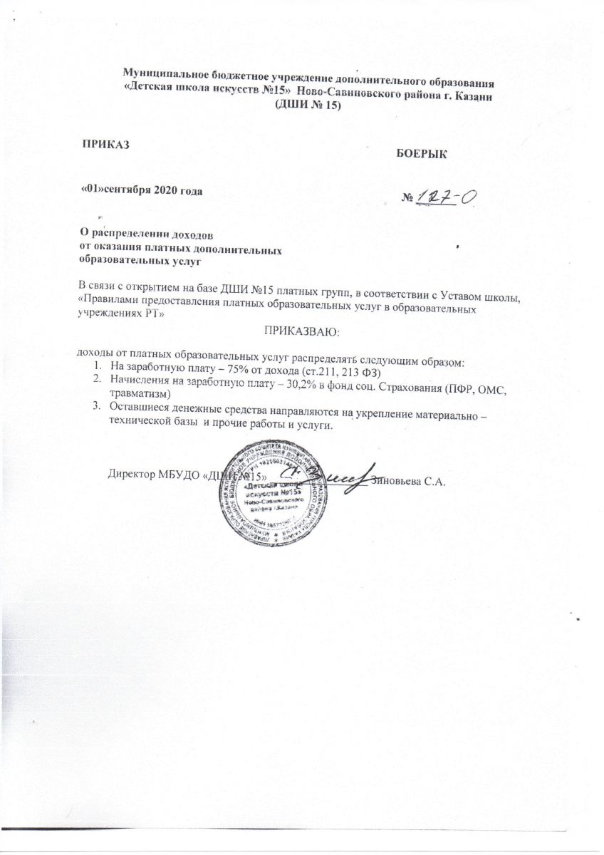 Приказ о распределении доходов от оказания платных дополнительных образовательных услуг