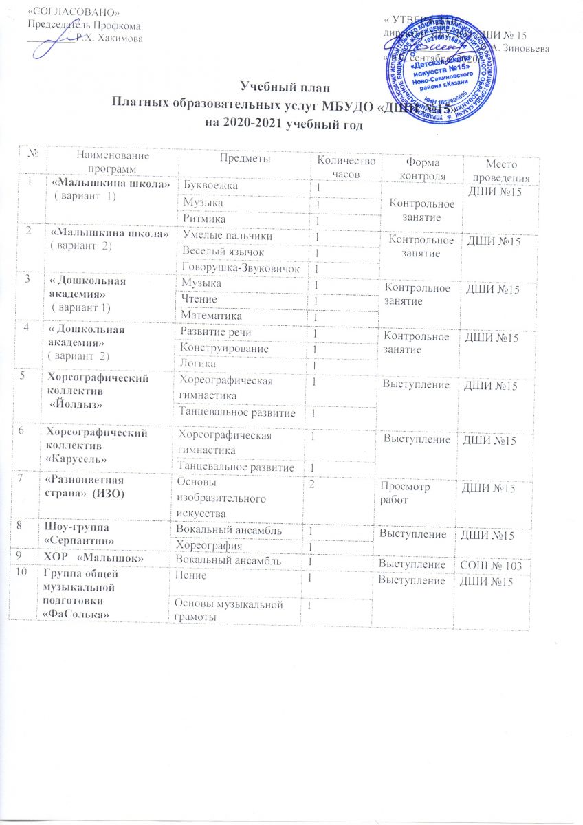 Учебный план платных образовательных услуг на 2020-2021 учебный год