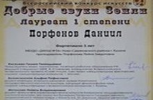 Поздравляем победителя Всероссийского конкурса "Добрые звуки Земли" Порфенова Даниила - Лауреата I степени (класс преп.Порфеновой Л.З.). Молодец!