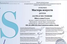 Поздравляем Ибатуллину Гузель и ее преподавателя Багаеву Ларису Александровну с победой на Всероссийском конкурсе "Мастера искусств", который состоялся 15 октября 2023 года - дипломом лауреата III степени. Желаем дальнейших достижений и вдохновения!