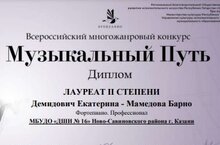 Поздравляем наших преподавателей Демидович Екатерину Андреевну и Мамедову Барно Нурметовну с дипломом лауреата II степени Всероссийского многожанрового конкурса "Музыкальный путь", который состоялся в Казани 1 ноября!