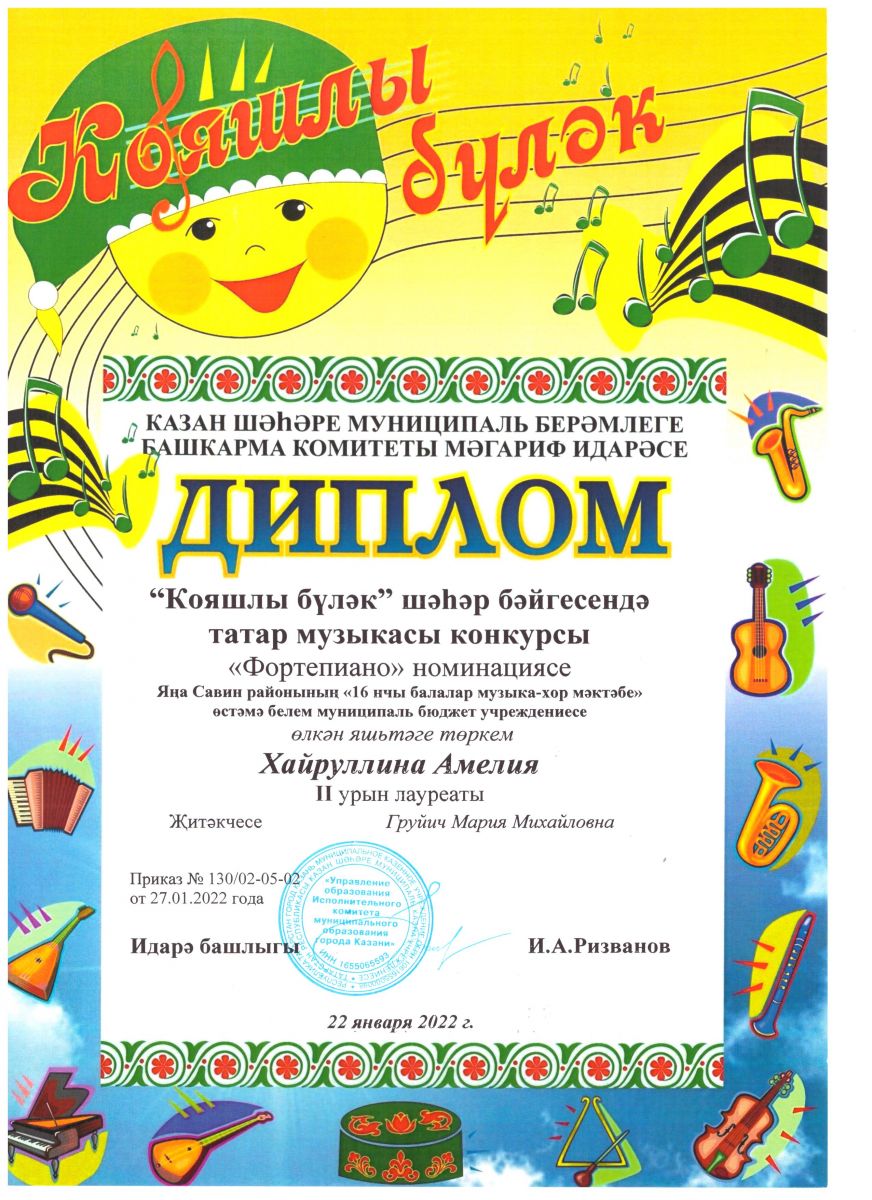 Хайруллина А. - Лауреат II степени конкурса "Кояшлы булек".jpeg
