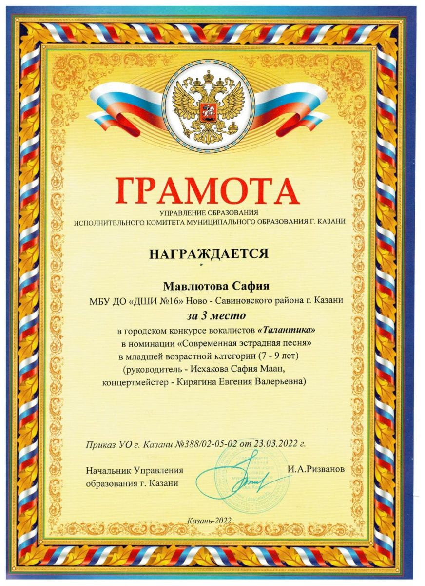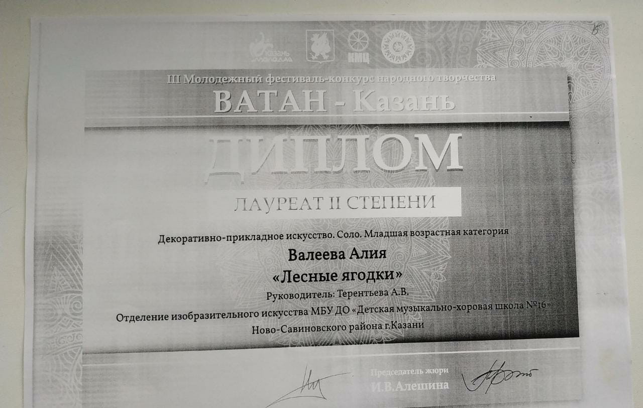 Валеева А. - Лауреат II степени конкурса "Ватан-Казань".jpg