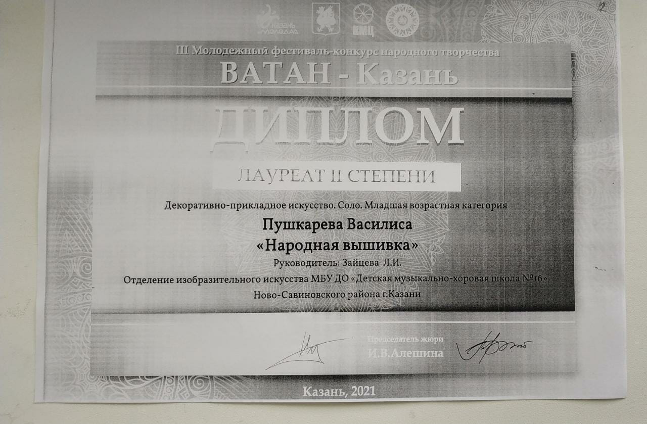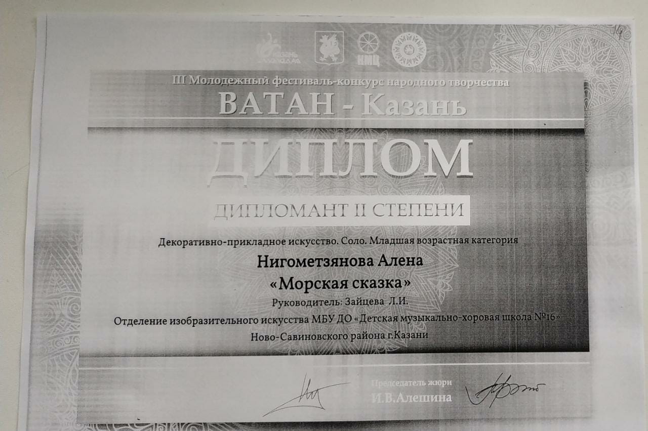 Нигометзянова А. - Дипломант II степени конкурса "Ватан- Казань".jpg