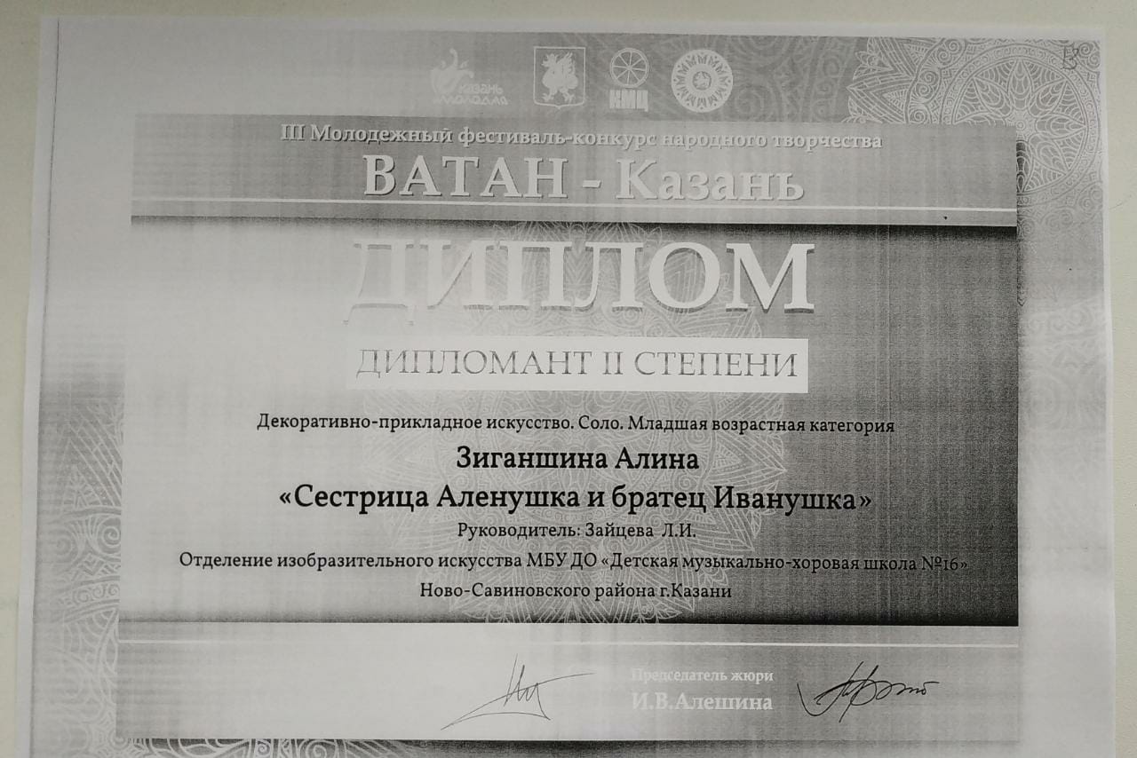 Зиганшина А.- Дипломант II степени конкурса "Ватан-Казань".jpg