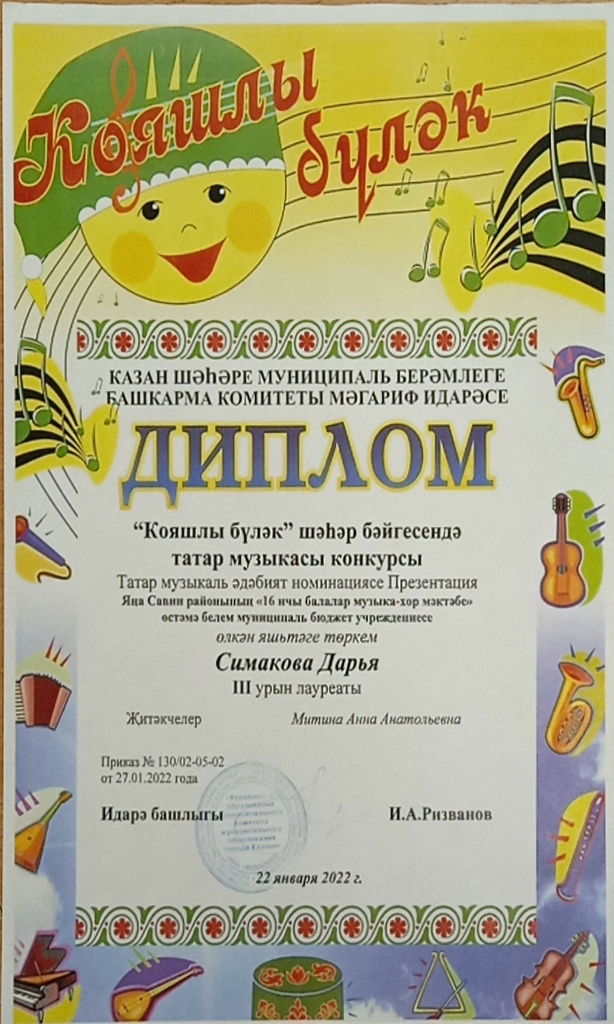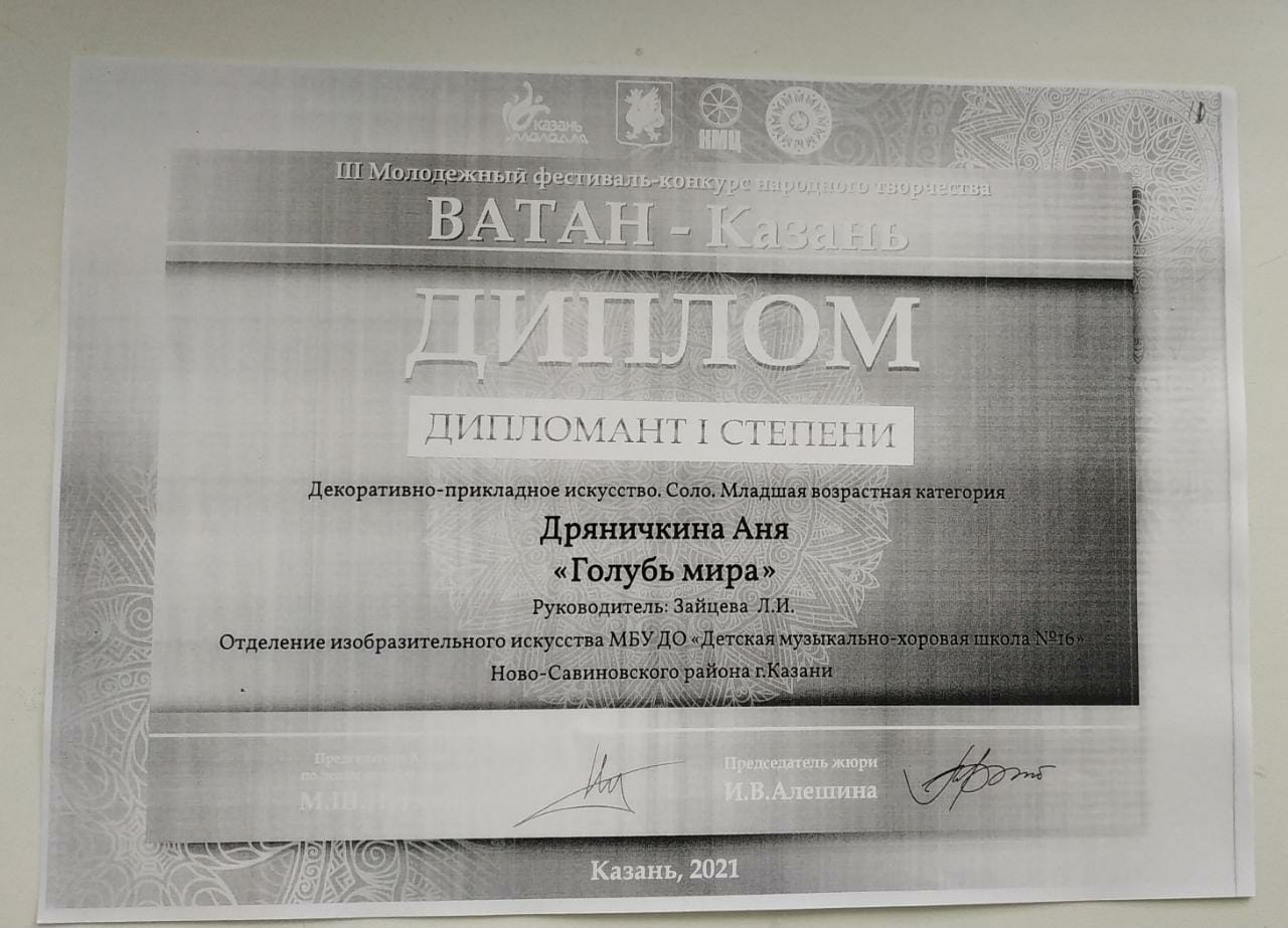 Дряничкина А.- Дипломант III степени конкурса "Ватан-Казань".jpg