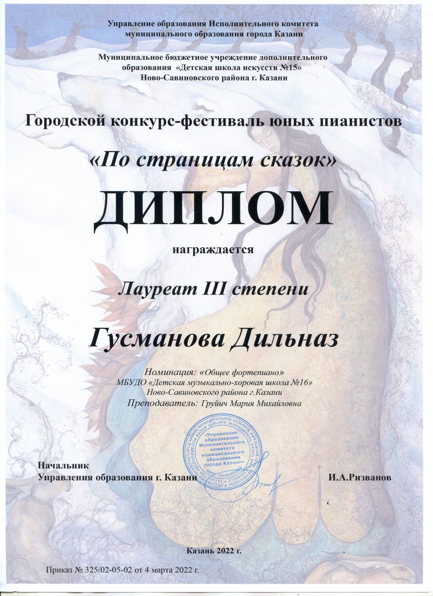 Гусманова Д. - Лауреат III степени конкурса "По страницам сказок".jpg