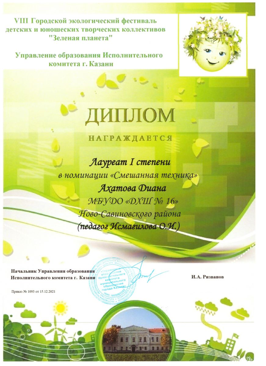 Ахатова Д. - Лауреат I степени фестиваля "Зеленая планета".jpеg