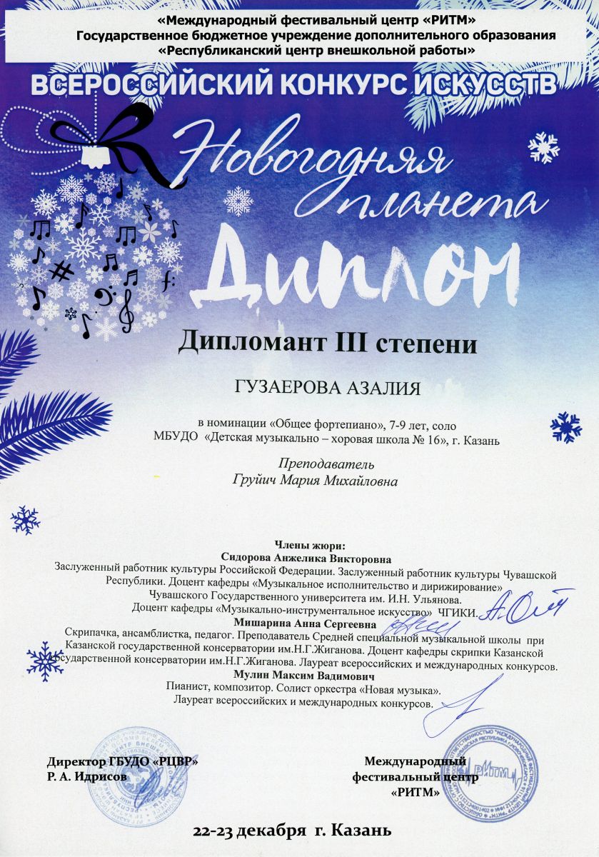 Гузаерова А. - Дипломант III степени конкурса Новогодняя планета.jpg