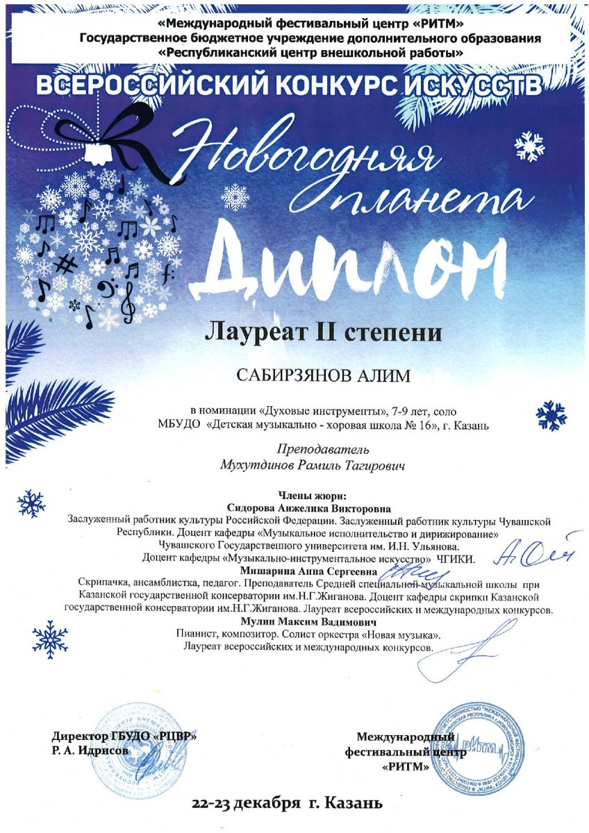Сабирзянов А. - Лауреат II степени конкурса Новогодняя планета.jpg