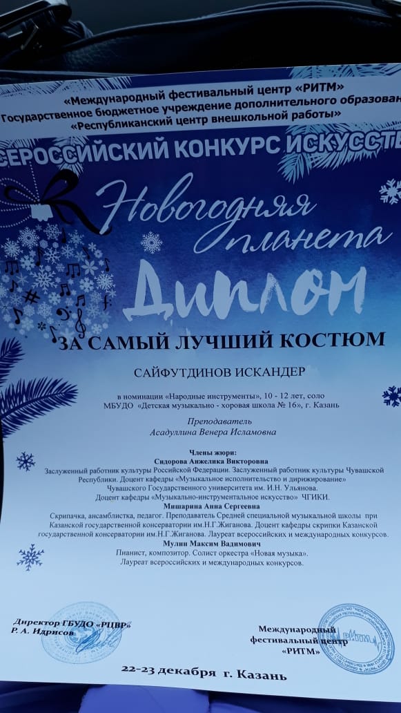 Сайфутдинов И. - Диплом за самый лучший костюм конкурса Новогодняя планета.jpg