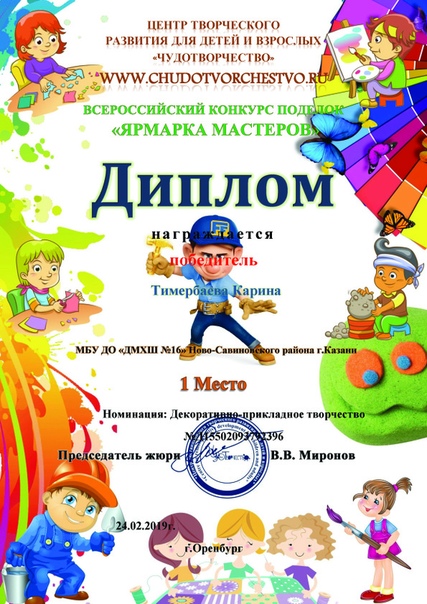 Тимербаева К. - Диплом за 1 место конкурса Ярмарка мастеров.jpg