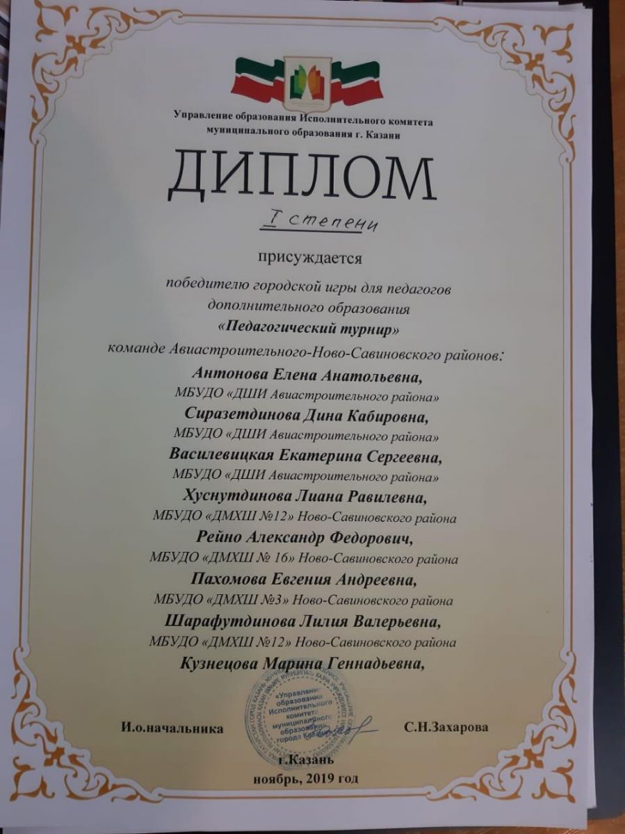 Рейно А.Ф. - Диплом I степени в составе команды игры Педагогический турнир.jpg