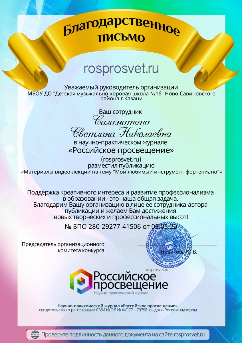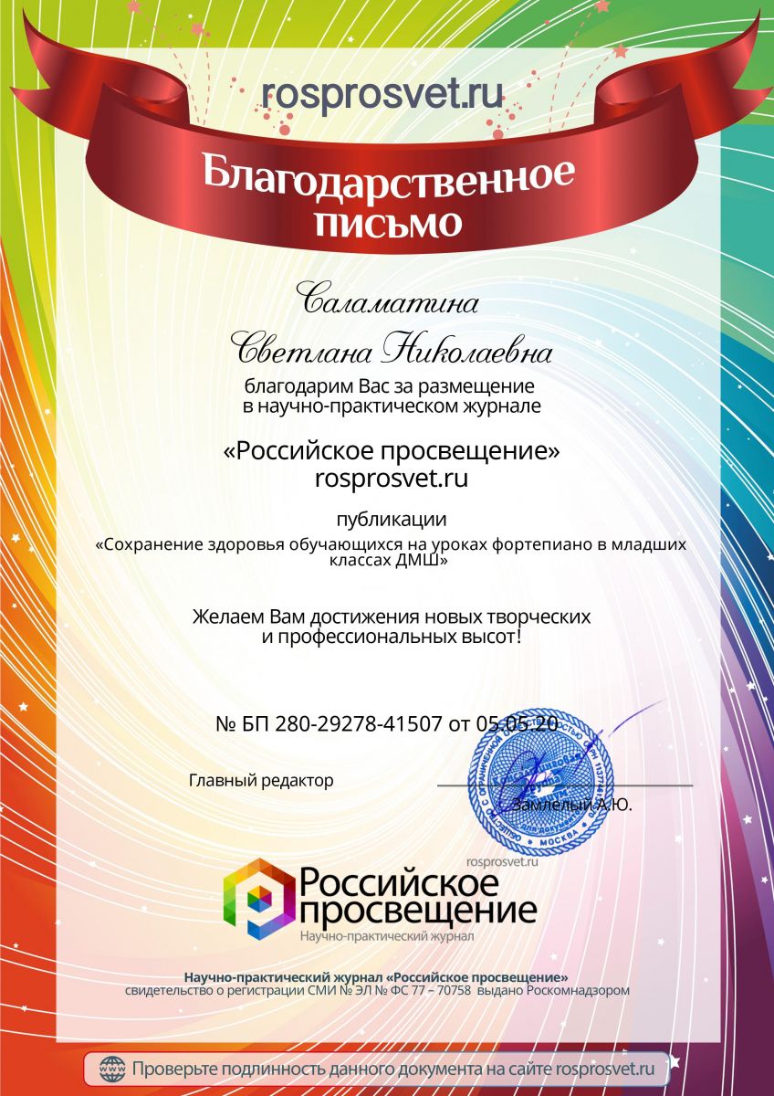 Саламатина С.Н. - Благ.письмо 1 главного редактора журнала "Российское просвещение".jpeg