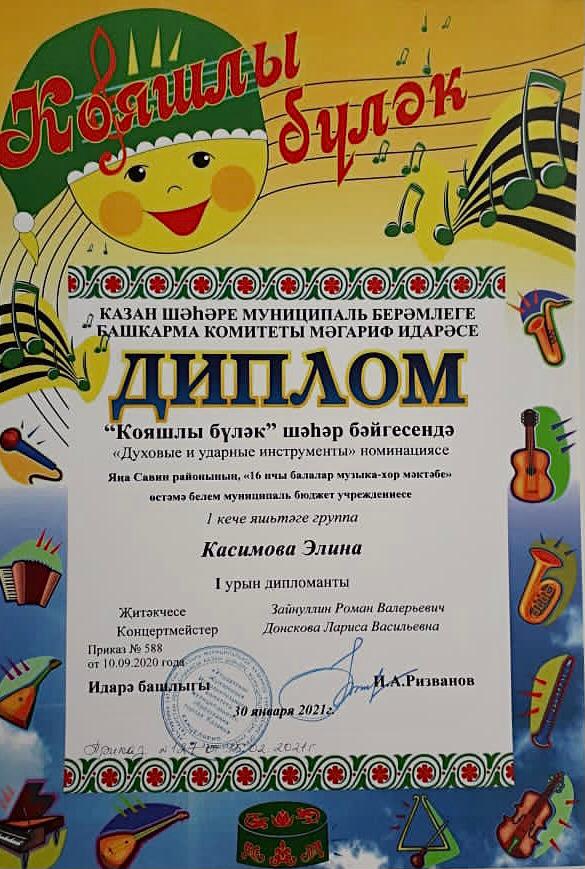 13. Касимова Э. - Дипломант I степени конкурса "Кояшлы булек".jpg