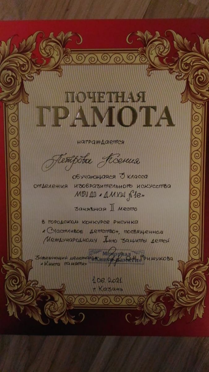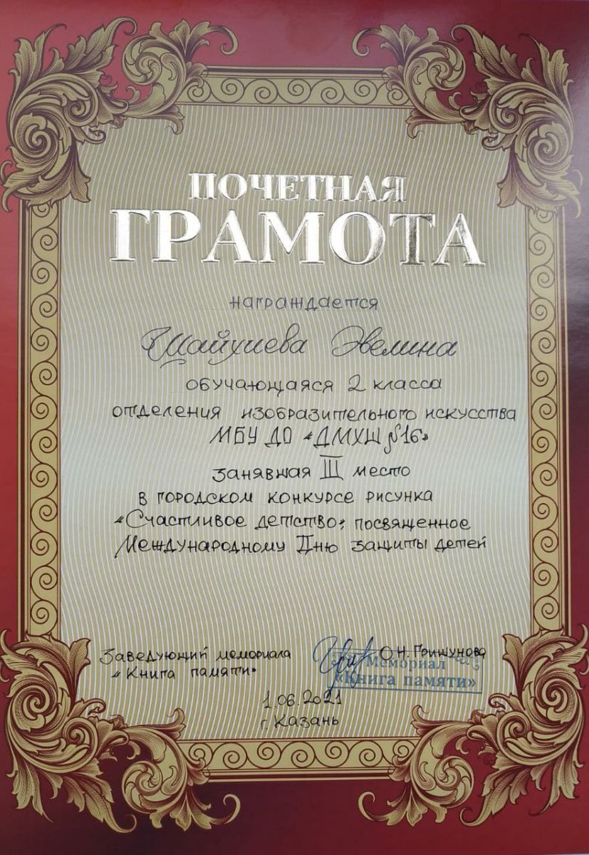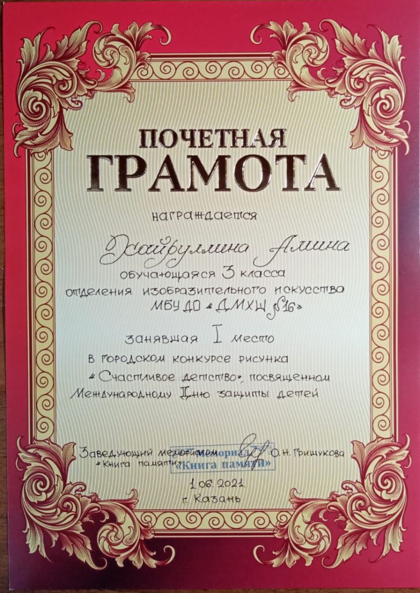29. Хайруллина А. - Грамота I место конкурса "Счастливое детство".jpg