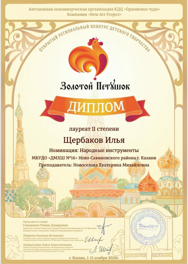 13. Щербаков И. - Лауреат II степени конкурса "Золотой петушок".jpg