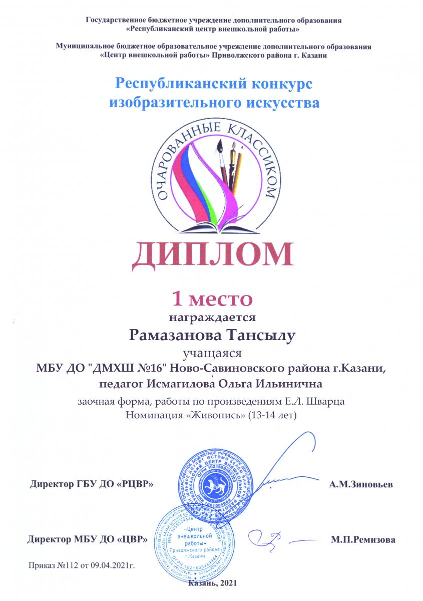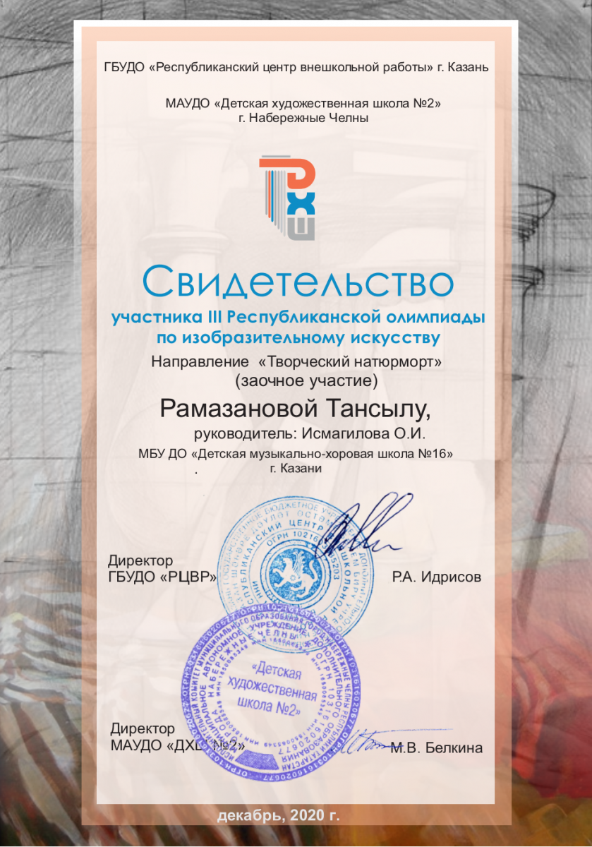 19. Рамазанова Т. - Свидетельство участника олимпиады по ИЗО г. Набережные Челны.png