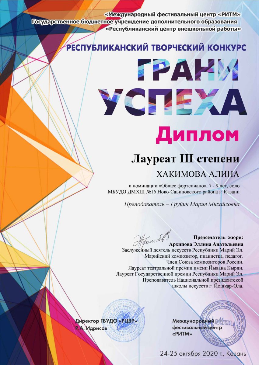 3. Хакимова А. - Лауреат III степени конкурса "Грани успеха".jpg