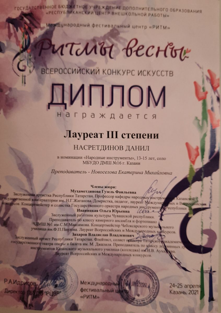 20. Насретдинов Д. - Лауреат III степени конкурса "Ритмы весны".jpg