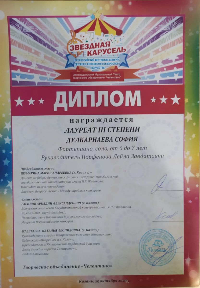 2. Дулкарнаева С. - Лауреат III ст. конкурса "Звездная карусель".jpg