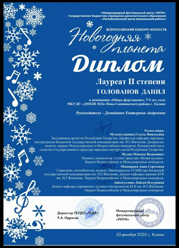 4. Голованов Д. - Лауреат II степени конкурса "Новогодняя планета".jpg