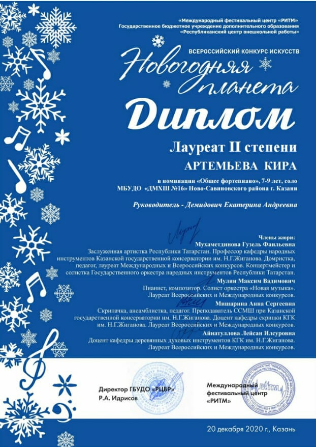 5. Артемьева К. - Лауреат II степени конкурса "Новогодняя планета".jpg