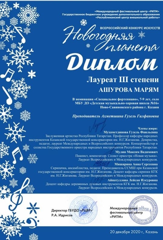 10. Ашурова М. - Лауреат III степени конкурса "Новогодняя планета".jpg
