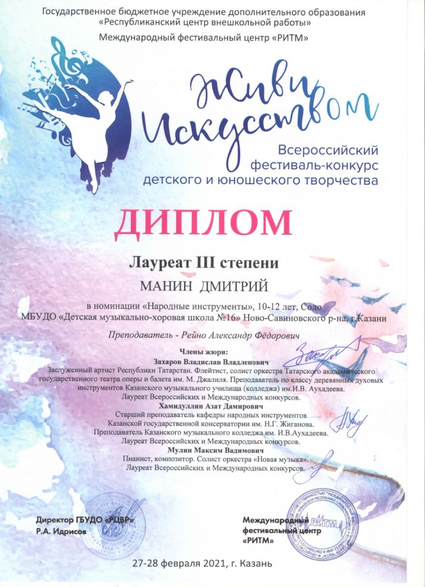 13. Манин Д. - Лауреат III степени конкурса "Живи искусством".jpg