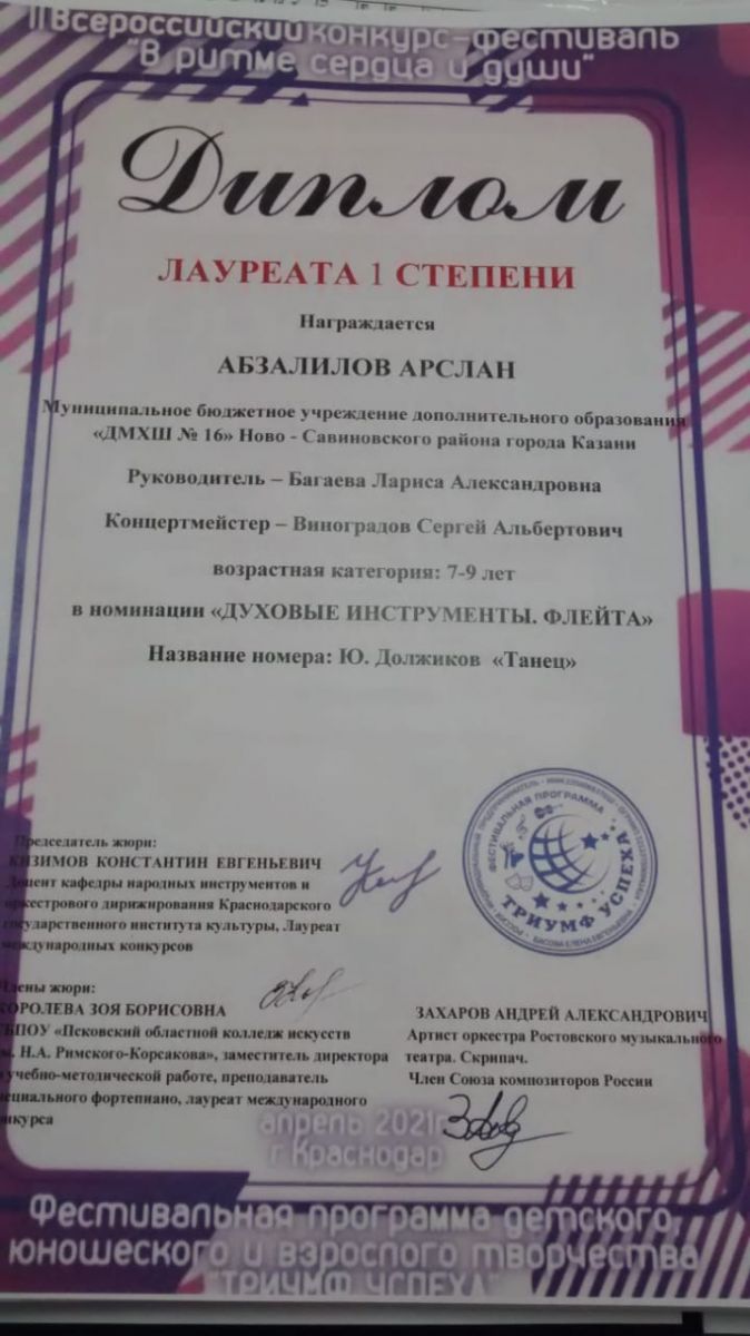 23. Абзалилов А. - Лауреат I степени корнкурса "В ритме сердца и души".jpg