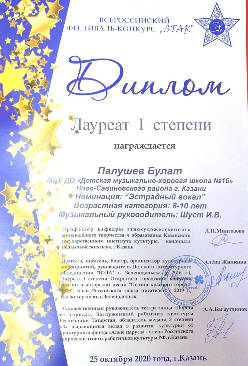 1. Палушев Б. - Лауреат I ст. конкурса "STAR". jpg
