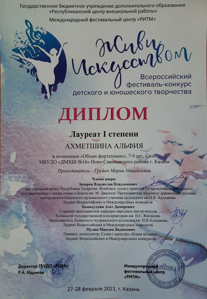 14. Ахметшина А. - Лауреат I степени конкурса "Живи искусством".jpg