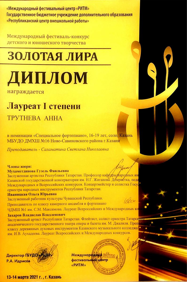 24. Трутнева А. - Лауреат I степени конкурса "Золотая лира".jpeg