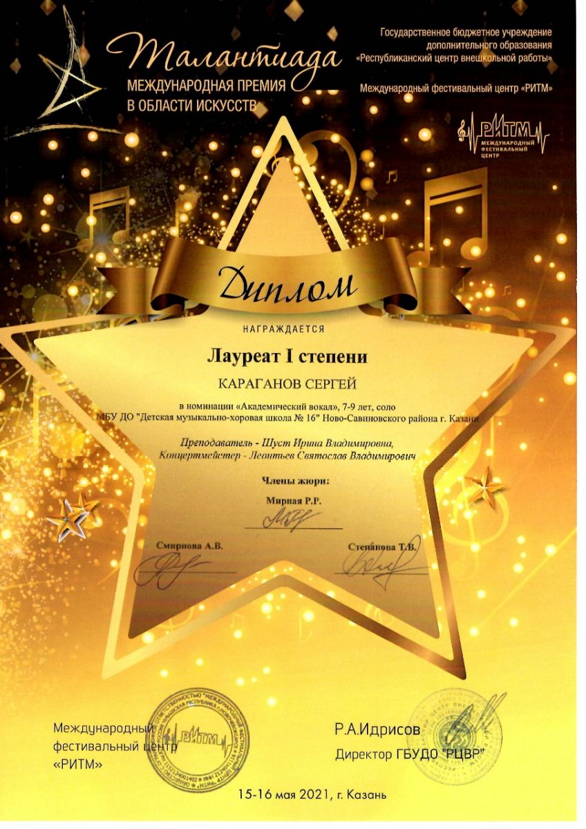 46. Караганов С. - Лауреат I степени конкурса "Талантиада".jpg
