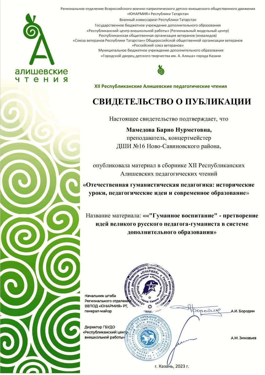 29.Мамедова Б.Н. - Свидетельство о публикации "Алишевские чтения"
