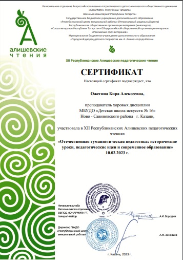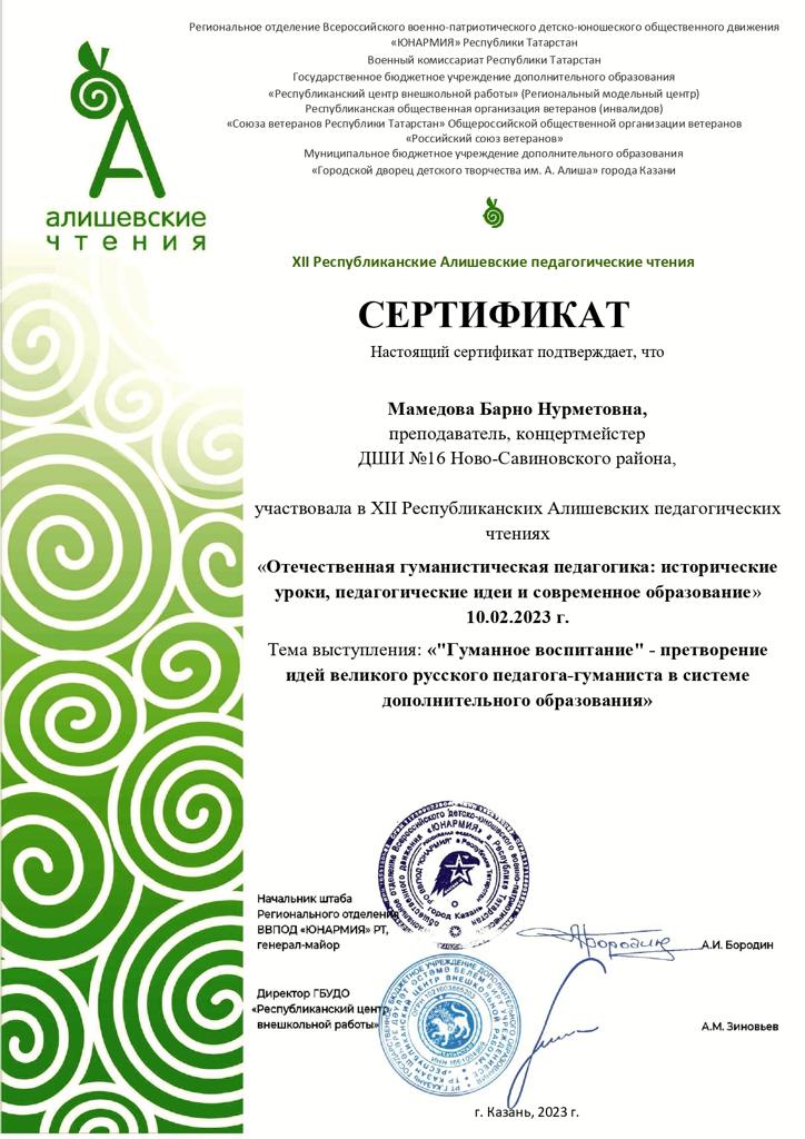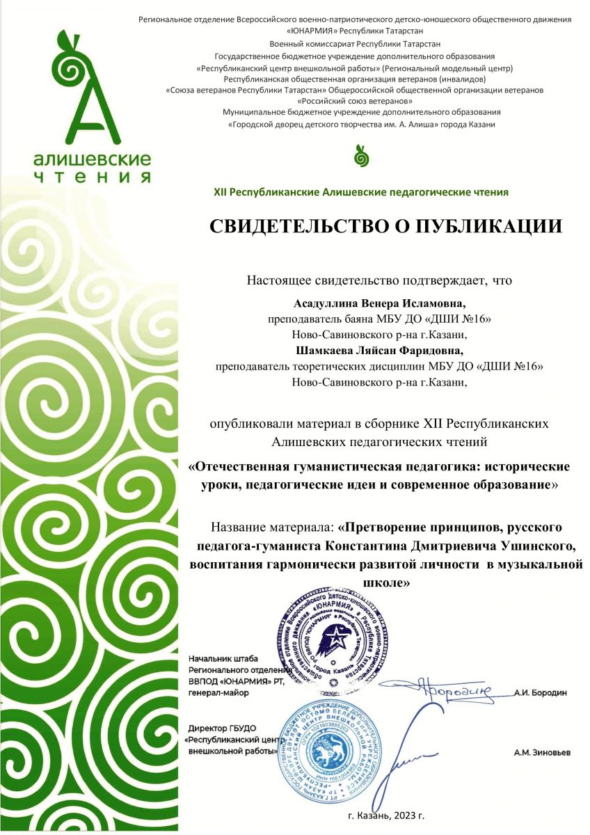 25.Асадуллина В.И. , Шамкаева Л.Ф. - Свидетельство о публикации " Алишевские педагогические чтения"