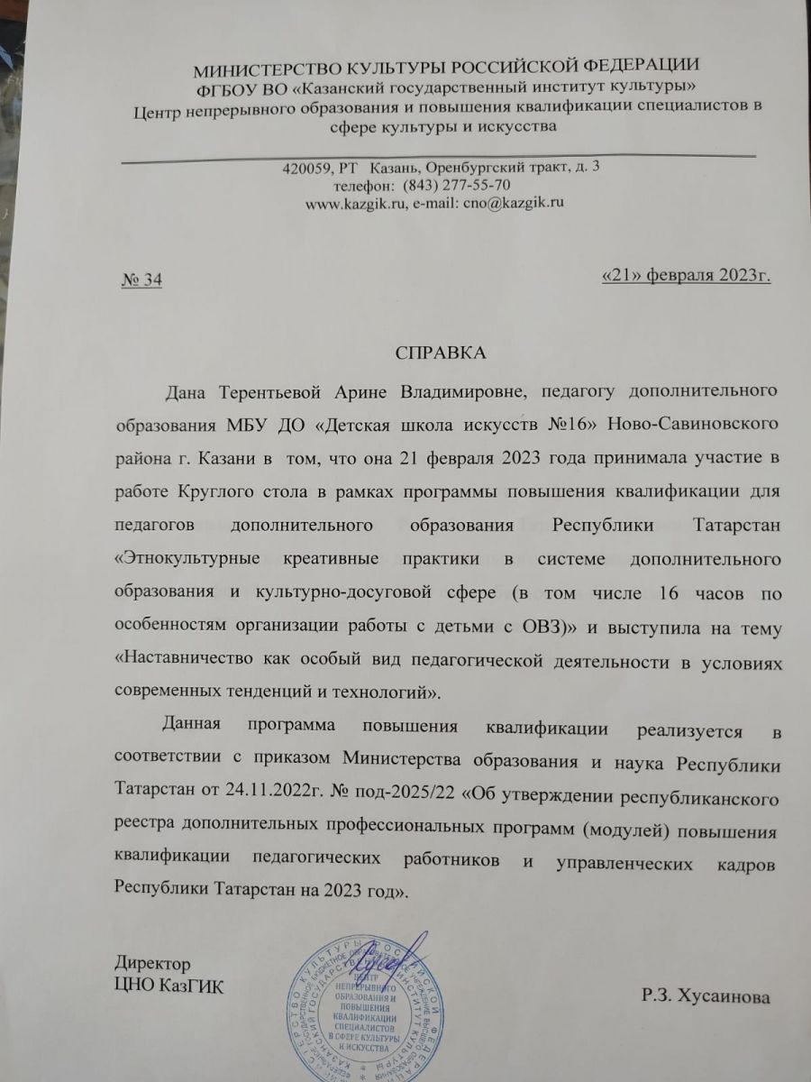 31.Терентьева А.В. - Справка об участии работе Круглого стола в рамках программы повышения квалификации